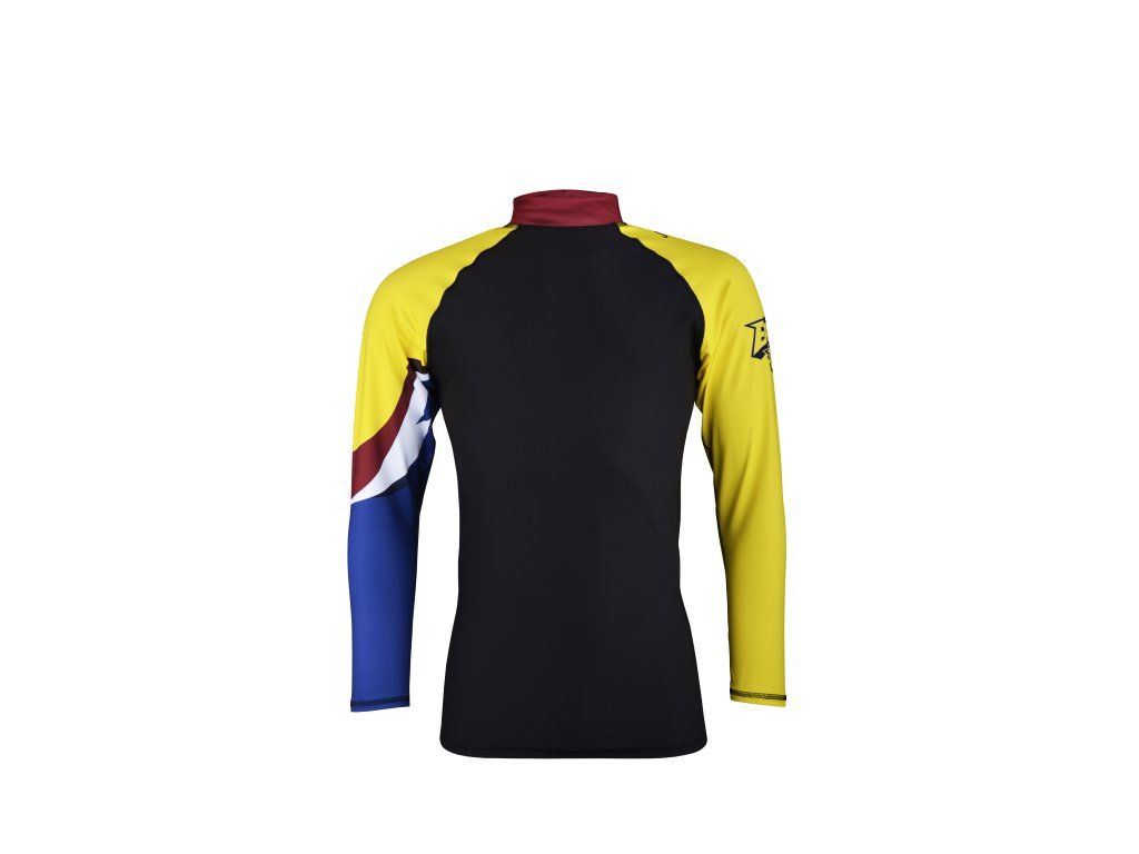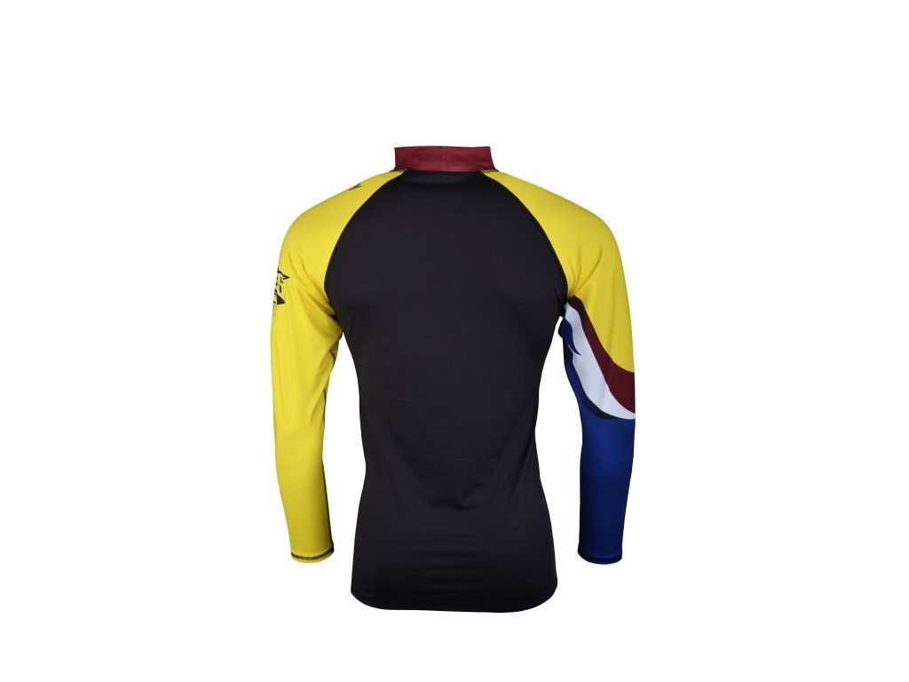 Funkční tričko má přilnavý střih, který skvěle kopíruje tělo a je vhodné jako spodní vrstva pod dres nebo sportovní výstroj. Tričko má moderní design v kombinací černé a žluté barvy s kontrastním límečkem. Raglánové rukávy zajišťují maximální volnost pohybu. Lehký a prodyšný materiál pomáhá odvádět pot a udržuje tělo v suchu i při velmi vysokých zátěží.